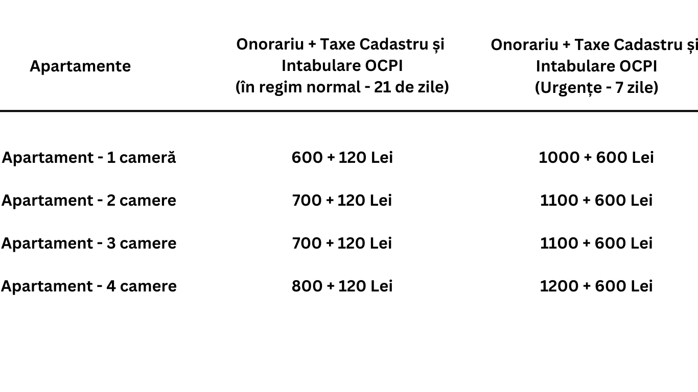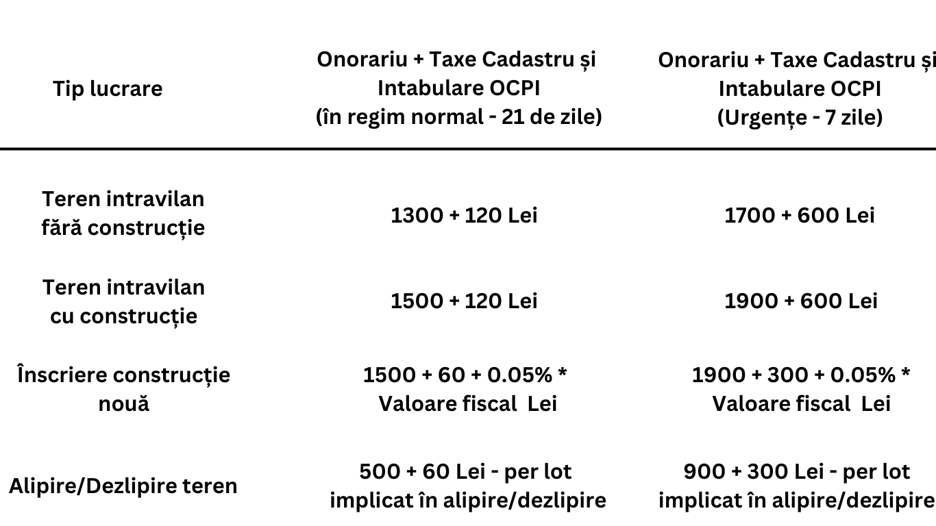 Onorariu + Taxe Cadastru și Intabulare OCPI